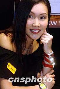 勞倫斯珠寶首飾公司三月三日在香港舉行的國際珠寶展上,首度推出全新ELINI腕表系列產(chǎn)品。圖為香港名模展示新款腕表系列產(chǎn)品。作者:錢興強