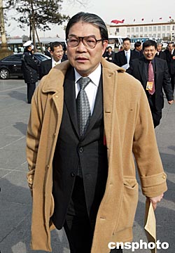 人民大會堂前的廣場上到處是圍追堵截委員的記者,很多熟悉的面孔紛紛被攔了下來。這時,一個身穿黑衣,頭戴棒球帽的委員靈活地在記者和委員中間快步穿梭前進,仔細一看原來是著名演員陳道明。