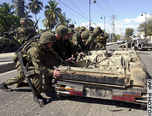 菲利普向媒體稱,他之所以作出上述決定,是因?yàn)榇饲懊绹\婈憫?zhàn)隊(duì)已向他承諾,國際維和部隊(duì)將解除前總統(tǒng)阿里斯蒂德支持者的武裝。
