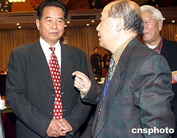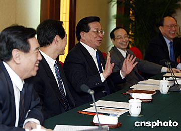溫家寶今天來到出席全國政協(xié)十屆二次會議經(jīng)濟界和農(nóng)業(yè)界委員下榻的鐵道大廈。在經(jīng)濟界和農(nóng)業(yè)界聯(lián)組會上,溫家寶認真聽取委員們的發(fā)言,他感謝委員們對政府工作的關(guān)心和支持,表示要認真研究大家的意見和建議,努力改進政府工作。
