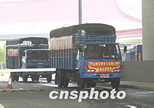圖為裝載著禽類產(chǎn)品的運輸車輛通過澳門關(guān)閘。