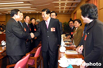 曾與賈慶林有過(guò)交往的郭金忠沒(méi)料到日里萬(wàn)機(jī)的老領(lǐng)導(dǎo)還記得自己,一個(gè)勁地說(shuō):老領(lǐng)導(dǎo)好啊!看到郭旁邊坐著的一排記者和工作人員,賈慶林?jǐn)D進(jìn)狹窄的通道一一與記者握手,然后又再次繞場(chǎng)一周與坐在后排的代表、列席人員一一握手,方才落座。
