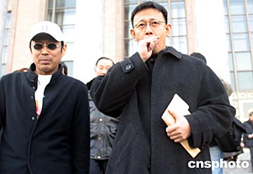全國(guó)政協(xié)十屆二次會(huì)議三月三日在北京人大會(huì)堂開幕,全國(guó)政協(xié)委員、著名電影演員姜文(右)和陳道明參加大會(huì)。中新社記者:張勤
