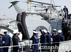 圖:中國海軍官兵參觀訪問青島的法國軍艦