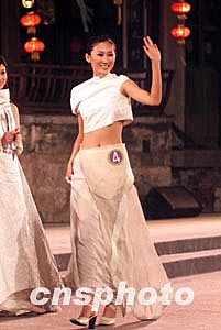 三月十五日晚,2004年國(guó)際旅游小姐大賽中國(guó)區(qū)總決賽在浙江西塘古鎮(zhèn)新搭建的水上舞臺(tái)落幕,16號(hào)選手丁蕾獲得季軍并獲得中國(guó)旅游夢(mèng)幻小姐稱號(hào)。中新社記者:盛佳鵬