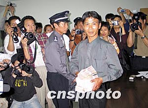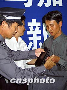 他介紹說自從公安部三月二日發(fā)布有關(guān)馬加爵的通緝令后,他始終留意這個信息。三月十五日晚七時(shí)左右他騎摩托車經(jīng)過三亞河西岸,前往第一市場買菜。發(fā)現(xiàn)路邊有一男子在路邊垃圾桶翻撿別人丟棄的食物和飲料,他覺得此人相貌與通緝令上的照片非常想像,他立刻與到處都粘貼的通緝令對照,認(rèn)為比較確定。在與馬犯對視的過程中,他還發(fā)現(xiàn)此人在裝瘋并且走路一瘸一拐。他立刻騎摩托前往三亞河西派出所報(bào)案。