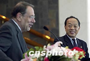 關于歐盟解除對華武器禁運問題,索拉納說,多年來,歐中關系并沒有受到禁運的影響,歐盟目前正在盡力尋找符合雙方價值觀和立場的方式,來解決這一問題。李肇星表示,對華武器禁運是冷戰(zhàn)時代的產物,而現(xiàn)在世界正處在以“和平”與“發(fā)展”為主題的時代。