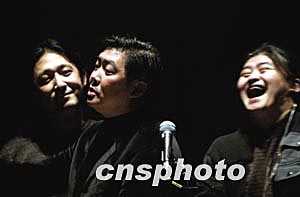 三月十八日下午,劉歡在首都體育館進(jìn)行其首次個(gè)人演唱會(huì)的彩排,十九日晚,演唱會(huì)將如期舉行。著名指揮余隆將指揮中國(guó)愛(ài)樂(lè)樂(lè)團(tuán)為劉歡伴奏。三寶、余隆、劉歡(從左倒右)在彩排現(xiàn)場(chǎng)一臉輕松。作者:高遠(yuǎn)