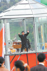 昨日上午7時(shí),記者來到碧峰峽的接待大廳外,看見陳建民已端坐在玻璃房中的書桌前開始看書。據(jù)公眾見證人說,陳建民早晨6時(shí)就起床了。記者撥通了陳建民的電話后得知,原來他把平時(shí)的生活習(xí)慣也帶進(jìn)了玻璃房。他告訴記者,平時(shí)他就習(xí)慣6時(shí)起床,所以前晚11時(shí)許他睡下時(shí)就定好了早晨6時(shí)的鬧鐘!敖^食第一晚,我睡得比平時(shí)輕松。因?yàn)槠綍r(shí)晚上還有病人來求診,睡不安穩(wěn),昨日我一覺就睡到早上,像在休假!