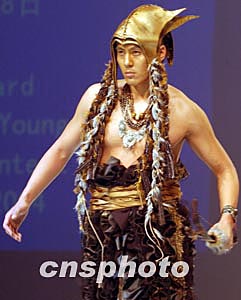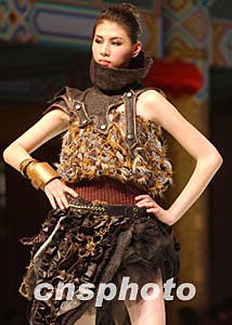 臺灣青年設(shè)計(jì)師陳琦珍在三月底北京“漢帛獎”第十二屆國際青年設(shè)計(jì)師時裝作品大賽中,以《武魂》主題將T型臺演繹為深淵中男武士的飄蕩之靈。中新社記者:賈國榮