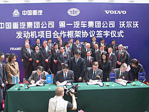 中國重型汽車集團有限公司董事長馬純濟在簽字儀式后說,作為世界發(fā)動機制造業(yè)的頂級企業(yè),沃爾沃集團第一次把發(fā)動機制造技術引入中國市場,這充分顯示沃爾沃集團置身并參與中國的經濟發(fā)展。他認為,這將大大加快中國發(fā)動機制造行業(yè)與世界先進水平接軌的進程。中國一汽集團公司總裁竺延風也高度評價了沃爾沃對中國發(fā)動機制造業(yè)所作的貢獻。