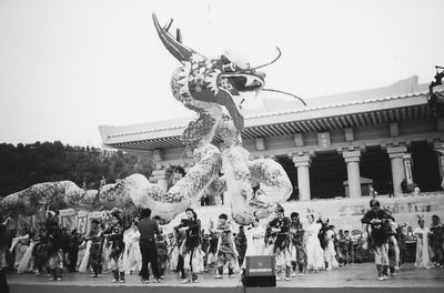 伴著合唱的變奏,“云門大卷”、“百獸率舞”、“中華鼓魂”聚集在大殿前,1000只鴿子飛向藍(lán)天,一條象征黃帝精神的60米長的巨龍從大殿內(nèi)“飄逸”而出,在舞臺上空盤旋翻飛,隨后,黃帝“馭龍飛天”而去……(本報陜西黃陵3月29日專電)