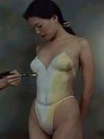 這一次的人體彩繪創(chuàng)作是要上翡翠雜志的封面,也是我第一次上雜志封面,聽明誠老師說:這也是中國雜志第一次以人體彩繪作封面。我聽了也很高興,所以我第二次的人體彩繪創(chuàng)作,也是有彩繪老師莊明誠表現(xiàn)“豹女”的作品。