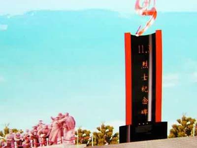 根據(jù)目前的設(shè)計方案,烈士紀念廣場選址衡陽烈士陵園。烈士紀念碑位于紀念廣場的東南面,是該廣場的標志性建筑。紀念碑高11.3米,長20米,中間是主碑,兩邊各是一組群雕。主碑由基座、碑座、主碑和鳳凰雕像組成,喻示20位烈士像鳳凰一樣在烈火中涅(般下加木)永生。主碑基座高1.19米,碑座周長11.3米,主碑直徑2.8米,是兩個缺圓,形似在“11·3”火災中坍塌的8層大樓,碑座下面缺口處刻有烈士事跡簡介,主碑中間刻“11·3烈士紀念碑”。紀念碑的兩組群雕由中間向兩邊傾斜,藝術(shù)地再現(xiàn)消防官兵撲滅“11·3”大火的壯烈場景。