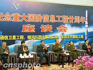 中國國防科研機(jī)構(gòu)和軍方八日在北京人民大會堂共同主辦紀(jì)念通信衛(wèi)星工程、銀河巨型計(jì)算機(jī)工程和軍用漢字微機(jī)工程三項(xiàng)重大國防信息工程二十周年座談會,中央軍委委員、解放軍總裝備部部長李繼耐上將以及國防科研專家、軍方人士兩百多人參加座談。張慶偉在座談會上致辭時(shí)透露了上述信息。