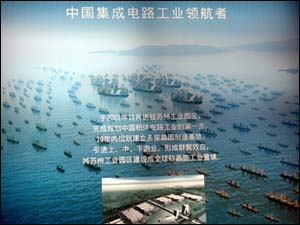 宋濤在鄭和艦隊(duì)帷幕前向記者介紹說,和艦科技是一家外資獨(dú)資企業(yè),注冊(cè)資本三點(diǎn)五億美金,二○○一年十一月進(jìn)駐蘇州工業(yè)園區(qū),第一座晶圓制造廠占地一點(diǎn)三平方公里,而蘇州給和艦科技留下了一百十公頃土地。