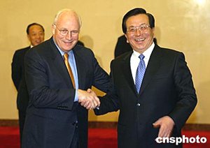 切尼對曾慶紅的歡迎表示感謝。他說,非常高興能夠再一次回到中國,重敘舊情。我們也認(rèn)為這次訪問很重要,布什總統(tǒng)對他和胡錦濤主席發(fā)展的各種關(guān)系感到非常滿意,我們認(rèn)為,雙方可以共同做很多方面的工作。我期待著這次會談,期待著第一次訪問上海,我們有機會討論很多問題,尋求一些方法,加強兩國之間的關(guān)系。