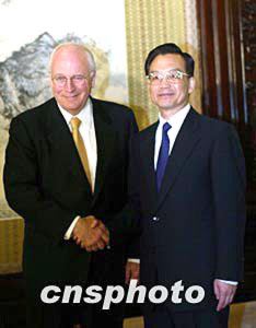 國務(wù)院總理溫家寶十四日在北京會(huì)見美國副總統(tǒng)切尼。中新社記者:滿會(huì)喬
