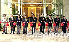 圖為澳門特區(qū)行政長官何厚鏵為「第四屆東亞運(yùn)動會澳門組委會總部」新大樓揭牌。