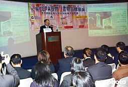 為協(xié)助香港時(shí)裝批發(fā)業(yè)了解內(nèi)地的最新?tīng)I(yíng)商環(huán)境及政策,掌握CEPA商機(jī),深圳市羅湖區(qū)經(jīng)濟(jì)貿(mào)易局與香港生產(chǎn)力促進(jìn)局四月十六日在香港舉行“香港時(shí)裝批發(fā)行業(yè)如何拓展內(nèi)地市場(chǎng)”研討會(huì)。圖為羅湖區(qū)經(jīng)濟(jì)貿(mào)易局局長(zhǎng)曹坤華在會(huì)上發(fā)言。作者:錢興強(qiáng)