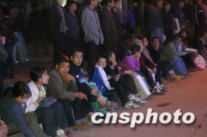 今晨,重慶天原化工廠發(fā)生氯氣泄漏事件,重慶市政府緊急疏散上萬當(dāng)?shù)厝罕姟D為重慶市政府緊急調(diào)集的車輛正在往安全地帶輸送群眾。作者:郭晉嘉  重慶市政府在離事發(fā)地兩公里的地方拉起的警戒線外圍觀的群眾。作者:郭晉嘉