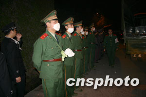 圖:重慶氯氣泄漏事故現(xiàn)場武警戰(zhàn)士待命