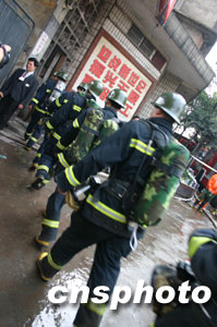 全副武裝的消防隊員正列隊進(jìn)入重慶市天原化工總廠排險。十五日晚,該廠發(fā)生氯氣泄漏事故,有十五萬人撤離。作者:鄒輝