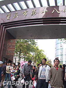 四月十八日下午四點多,被臨時安置在重慶市第十八中學(xué)的群眾得到"可以回家"通知,大家歸心似箭。為急于回家的群眾涌出該學(xué)校大門。作者:郭晉嘉