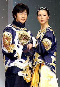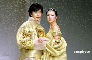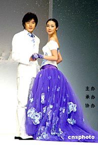 2004年4月22日,韓國服飾設計大師ANDREKIM的服裝發(fā)布會在上海舉行。權相宇與崔智友T臺上演藝浪漫愛情。 楊明靜 攝