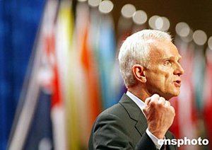 德國寶馬集團(tuán)董事長龐克四月二十五日在企業(yè)家峰會上演講。亞洲博鰲論壇今年首次舉行企業(yè)家峰會,會議吸引了寶馬、飛利浦、三星等世界著名企業(yè)家前來出席。中新社記者:鄭萍萍