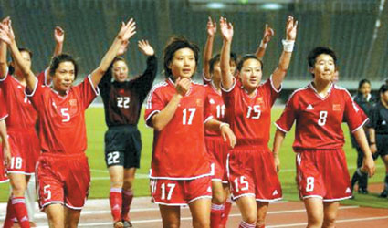 下半時15分鐘,曲飛飛接到浦瑋的傳球后,并沒有急于出腳,她在冷靜的調(diào)整、撥球后,在最合適的位置起腳,韓國隊門將金正美努力地伸出右臂,但飛飛的射門力拔千鈞。范運杰、滕巍、浦瑋興奮得恨不得把飛飛按倒在地。直到下半時35分鐘,海濤才舍得用張穎換下飛飛,因為飛飛的腿已經(jīng)被對方踢得青一塊紫一塊。