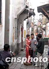 一對身著中式傳統(tǒng)服裝的青年男女在福州老城區(qū)“三坊七巷”里拍攝婚紗照。時下,越來越多的福州年輕人熱衷懷舊風格的婚紗照。作者:鄭祚聲