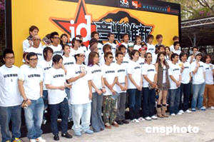香港一眾歌星及音樂人4月28日在香港商業(yè)電臺出席《id音樂維新》記者會,以「愛哥利‧買音樂」為口號,眾歌星及音樂人一同高舉其「音樂心血結(jié)晶」呼吁大家支持正版音樂,非法下載歌曲及購買盜版唱片的禍害,將影響到香港樂壇的生存空間。作者:鄧慶樂