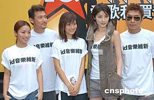 歌星許志安、陳慧琳、董敏莉、張學(xué)友、鄭融(右起)4月28日在香港商業(yè)電臺出席《id音樂維新》記者會,眾星百忙中出席活動,目的齊心呼吁大家支持正版音樂。作者:鄧慶樂