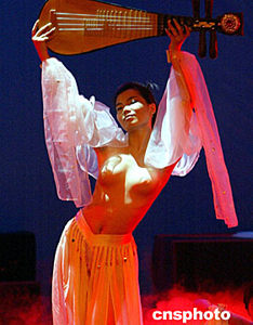 歷經(jīng)風(fēng)風(fēng)雨雨的首屆中國“人體藝術(shù)模特大賽”五月三日晚在重慶市郊一家小劇院“悄悄地”舉行,十五名經(jīng)過預(yù)賽和培訓(xùn)的男女模特參加歷時倆個小時的比賽,女模特用不全裸的“中國方式”表演中國舞蹈“飛天”,盡情展示人體之美。中新社記者:任晨鳴