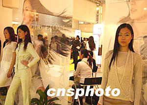 幾位身著春裝的姑娘在北京一家服裝店前擔(dān)任活動模特。今春中國氣候時冷時熱,變化異常,商家隨之推遲夏裝上市。中新社記者:賈國榮