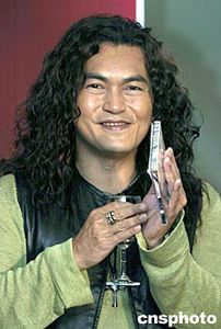 2004年5月11日,臺(tái)灣搖滾樂手、被稱為“老爹”的迪克牛仔在加盟新索音樂后發(fā)布首張唱片。圖為“老爹”在北京舉行的發(fā)布會(huì)上。中新社記者:高遠(yuǎn)