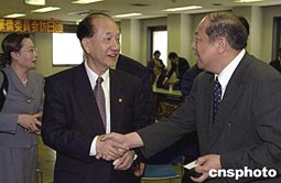 全國人大華僑委員會訪日團一行五月十一日在東京與旅日僑界人士座談,其熱點匯集在為眾多新老華僑所共同關注的子女華文教育問題。圖為率團訪日的陳光毅主任向橫濱山手中華學校校長潘民生詢問相關情況。作者:王健