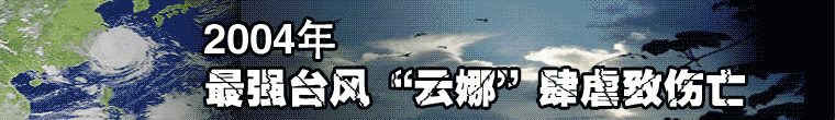 二○○四年第十四號臺風“云娜”于八月十二日晚間八時許在浙江臺州溫嶺石塘鎮(zhèn)登陸。這是這一年以來四個在中國沿海登陸的熱帶風暴中強度最強的一個,也是自一九九七年以來對浙江影響最嚴重的臺風。截至登陸當晚二