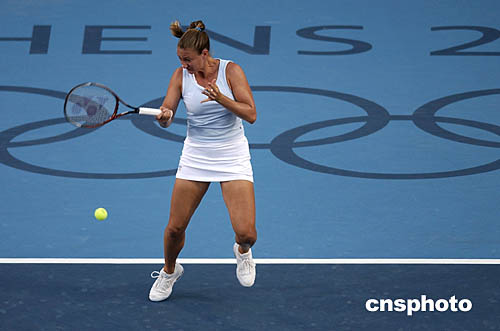 圖為法國(guó)選手皮爾斯在當(dāng)?shù)貢r(shí)間8月19日舉行的女子網(wǎng)球賽中對(duì)決比利時(shí)選手海寧。