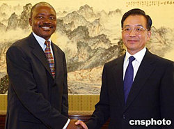 中新社北京八月二十日電 中國國務(wù)院總理溫家寶今天在中南海會見了來訪的利比里亞外交部長尼梅利,雙方就發(fā)展中利關(guān)系等問題交換了意見。