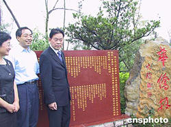今天上午,國務(wù)院僑辦副主任李海峰、四川省副省長黃小祥和僑領(lǐng)代表為“華僑林”留芳碑揭彩!叭A僑林”占地一百二十畝,建設(shè)資金三百萬元人民幣,由百名僑領(lǐng)每人捐資三千五百美元修建!叭A僑林”內(nèi)喬木挺拔、翠竹蔥籠,花草飄香。