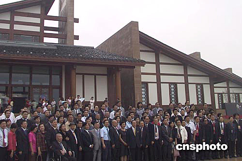 今天上午,來(lái)自五大洲三十一個(gè)國(guó)家的百余名海外華僑華人冒雨參觀鄧小平故居陳列館。在造型獨(dú)具匠心的陳列館前,他們與國(guó)務(wù)院僑辦、四川省、廣安市的官員合影留念。作者:楊杰