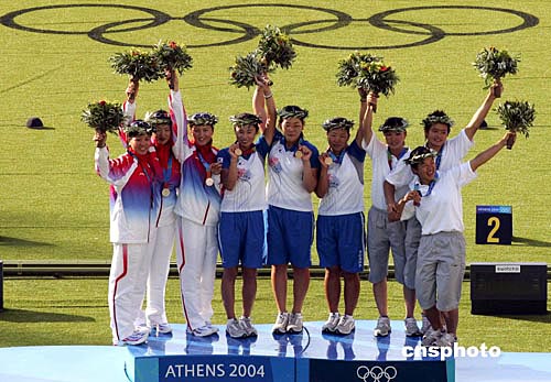 中新社雅典八月二十日電 雅典當(dāng)?shù)貢r(shí)間今天傍晚,中國(guó)女箭手在奧運(yùn)會(huì)團(tuán)體決賽中,以二百四十比二百四十一而一箭惜敗,再度負(fù)于上屆奧運(yùn)冠軍韓國(guó)隊(duì),獲得銀牌。中國(guó)臺(tái)北隊(duì)奪取銅牌。