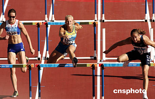 圖為在當(dāng)?shù)貢r間8月20日舉行的女子七項全能100米欄比賽中,選手們的出色表現(xiàn)。