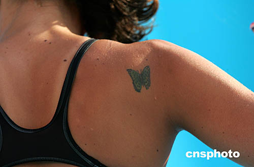 圖為法國17歲小將梅奧杜背部的蝴蝶刺青。