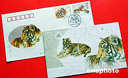 北京市郵票公司為配合國(guó)家郵政局于八月二十三日發(fā)行《華南虎》特種郵票(一套二枚),特設(shè)計(jì)印制了《華南虎》特種郵票的首日封、郵折、等郵品,將于八月二十三日與郵票同日發(fā)行。這兩枚郵票的名稱(chēng)均為華南虎,面值分別為八十分與二元。華南虎屬極度瀕危動(dòng)物,其野生種群不足為三十只,在中國(guó)動(dòng)物園內(nèi)也只有五十只,與大熊貓同被列入國(guó)際自然與自然保護(hù)聯(lián)盟(IUCN)十大瀕危物種之列。中新社記者:鄒憲