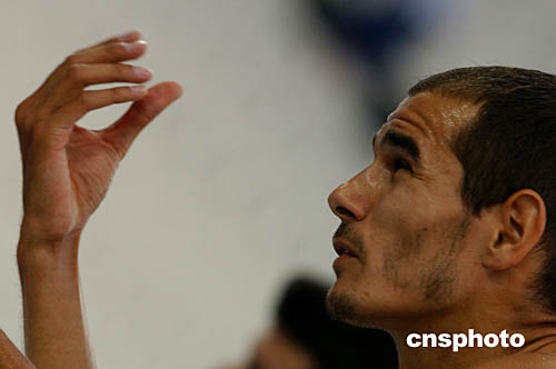 圖為法國選手巴拉(Mehdi Baala)在男子1500米比賽前為自己鼓勵加油。