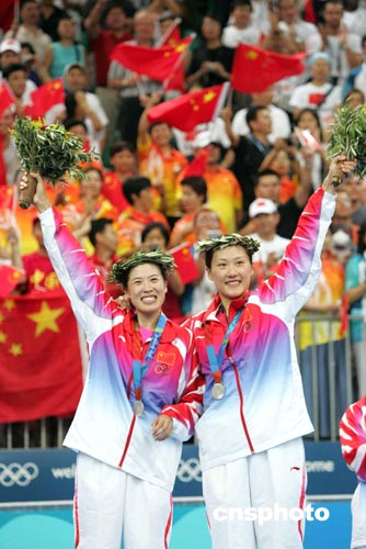 “黃穗抽筋了,我也該到修理廠大修了!备崚笑著和混雙搭檔張軍說道,張軍讓她多喝點(diǎn)水休息一下,“我喝了,可是不管用,還是累!”高崚/黃穗今日下午在雅典奧運(yùn)會羽球女雙決賽中一比二不敵隊(duì)友楊維/張潔雯獲得銀牌,體力嚴(yán)重透支是高崚/黃穗失利的主要原因之一。
