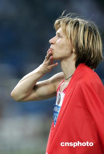 當(dāng)?shù)貢r(shí)間八月二十一日晚,在雅典奧運(yùn)女子百米飛人大戰(zhàn)中,白俄羅斯選手內(nèi)斯特倫科以十秒九四的成績(jī)奪得冠軍。中新社記者:毛建軍